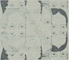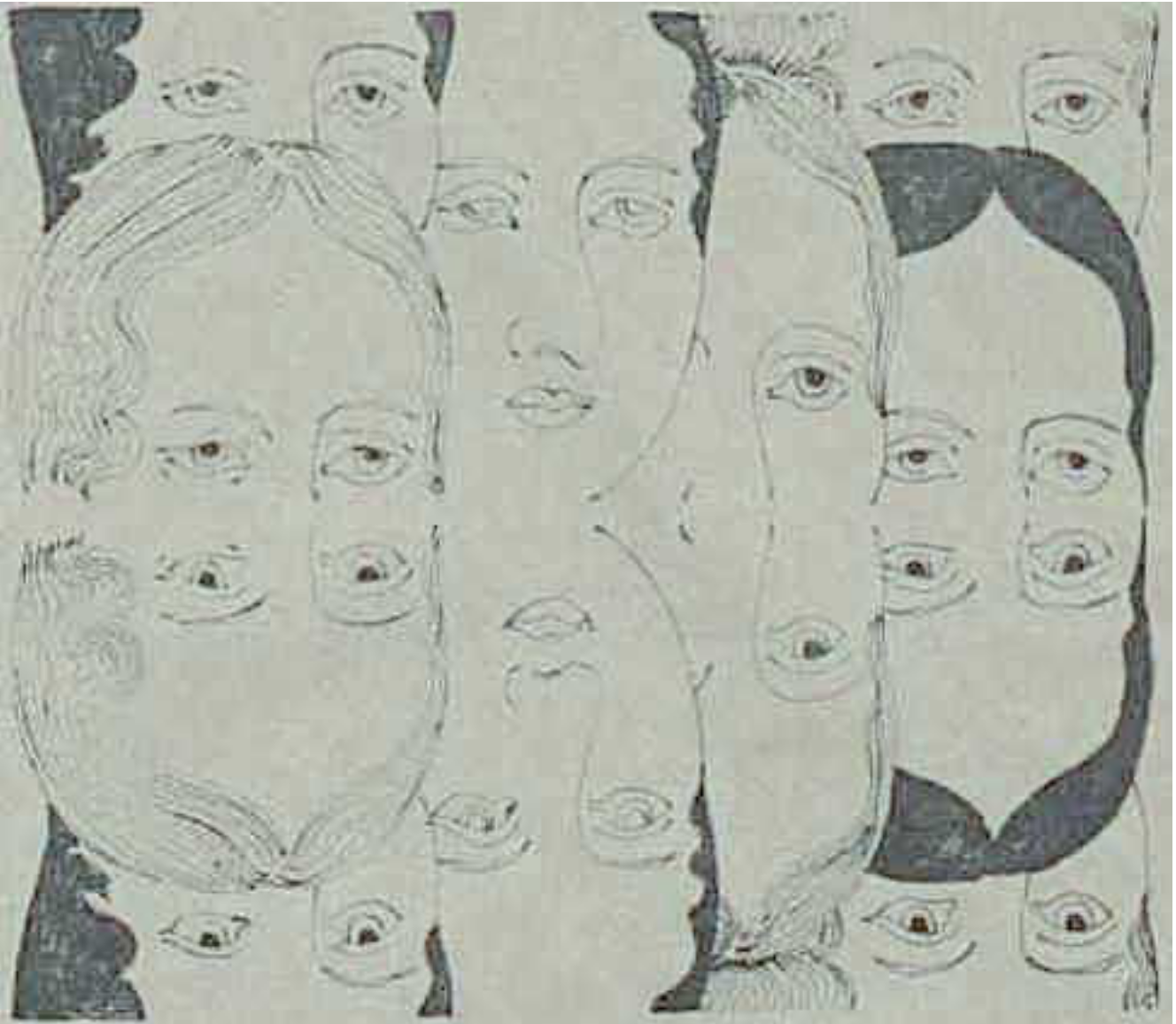 Série de visages dessinés qui se reflètent horizontalement